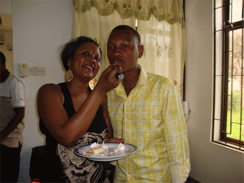 Keki kwaajili ya watoto wake wawili Clinton na Hartman jr.